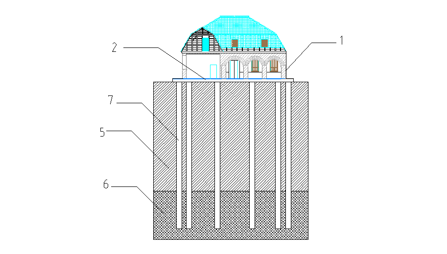 濟(jì)南皮膚病醫(yī)院位于濟(jì)南市中山公園東老商埠一期地塊內(nèi),歷時(shí)百年,為仿德式歷史風(fēng)貌建筑。該建筑物為單層帶局部地下室的砌體結(jié)構(gòu),建筑面積約165.08平方米,其南立面見圖8。山東融匯建設(shè)開發(fā)有限公司在對(duì)該地塊開發(fā)的同時(shí),本著保護(hù)文物傳承文化的目的,擬對(duì)該建筑原址保護(hù),并在其下方增設(shè)三層地下停車場。