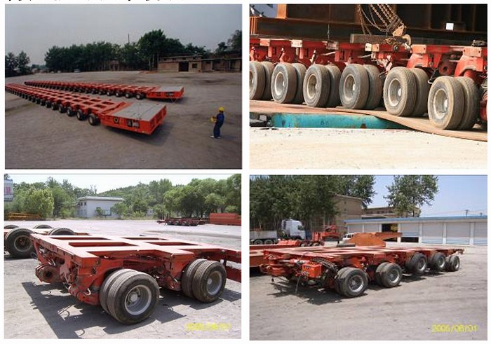 此次遷移使用法國NICOLAS自帶動力大型液壓平板拖車,此次拖運共使用2列20組車板,車輪共計128個。